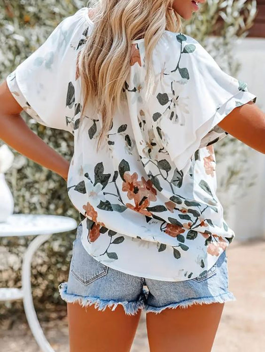 Rose Leopard Print Oversized Half Sleeve V Neck Top - Warm