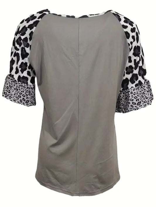 Leopard Waffle Knit Short Sleeve Top - Warm