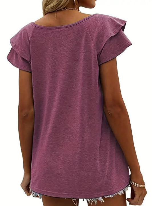 Petal Sleeve V-Neck Top - Warm