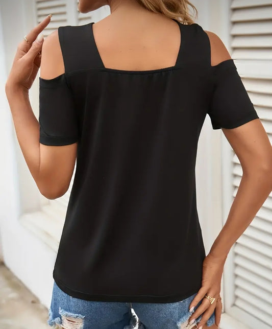 Cold Shoulder Criss Cross V Neck Top - Warm