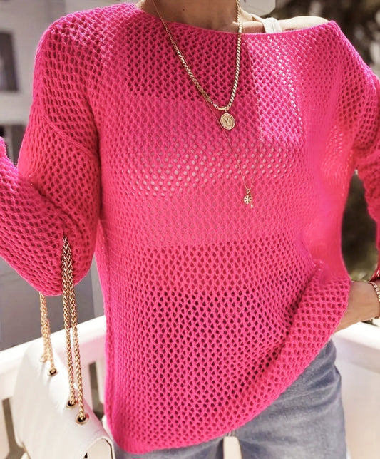 Crochet Solid Knit Sweater - Warm