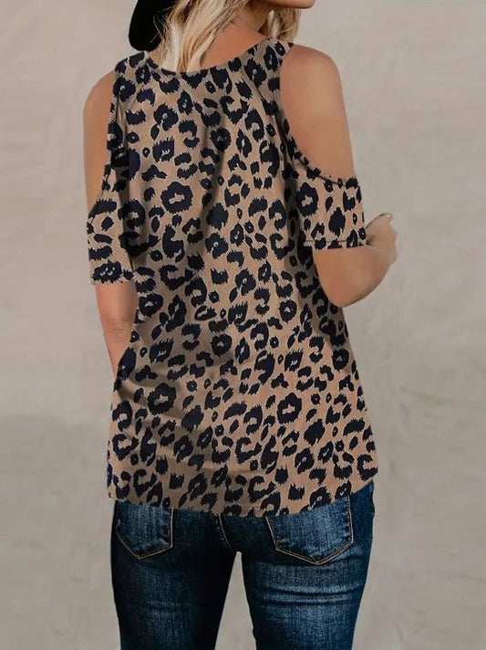 Black Ruffle Bell Sleeve Leopard Floral Patchwork Top - Warm